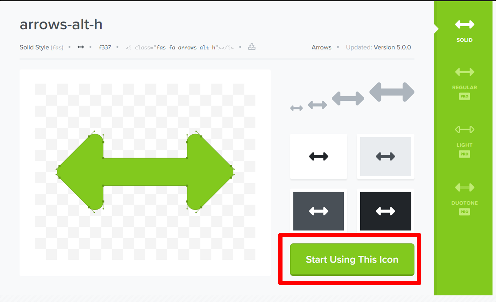 5. 'Start Using This Icon' 버튼을 클릭합니다.