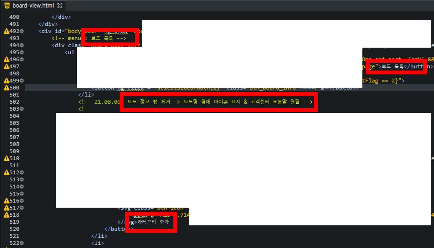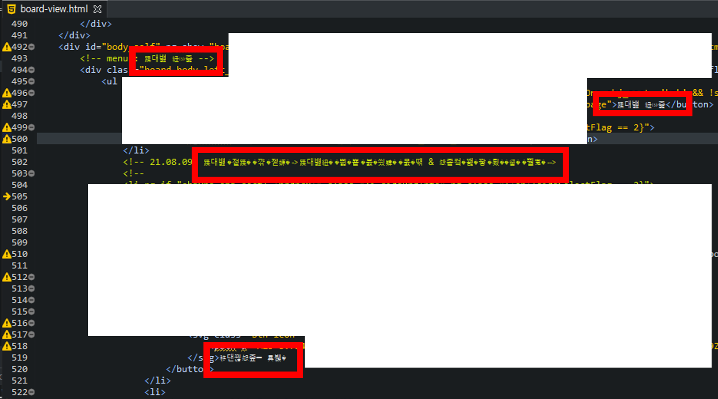 간혹 이렇게 프로젝트 단위로 인코딩 방식을 utf-8로 바꿔줘도 안에 포함돼있는 html 이나 js 파일이 수정되지 않는 경우도 있습니다. 그럴 때에는 그 각각 파일도 위와 같은 방법으로 Text file encoding 을 utf-8 로 바꿔주세요. 그러면 정상적으로 한글이 표시됩니다.