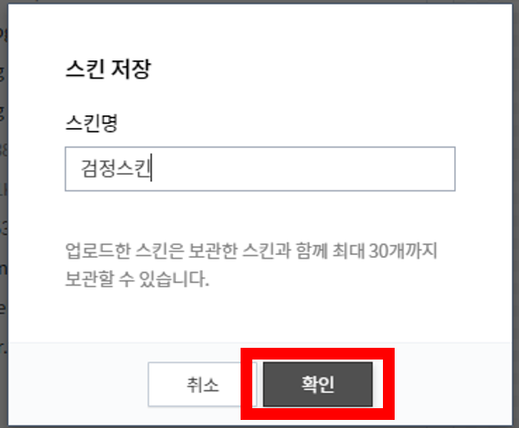 9. 그러면 다음과 같이 스킨명을 입력하라는 창이 뜹니다.