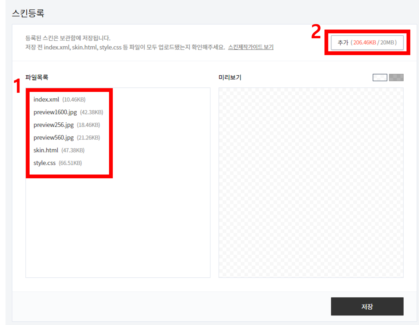 8. 모든 파일이 업로드 된 것을 확인하고, '저장' 버튼을 클릭해줍니다.