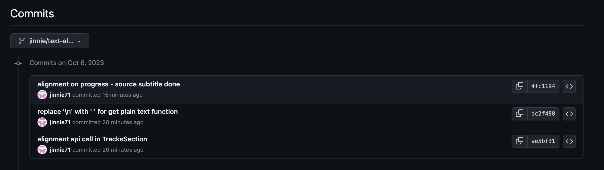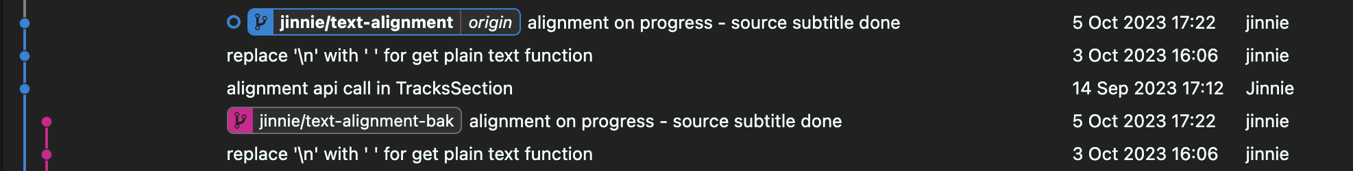 *체크아웃 된 브랜치 : jinnie/text-alignment
