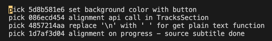 맨앞에 'pick'이라고 되어있는 것은, 이 커밋을 사용하겠다는 의미입니다.
