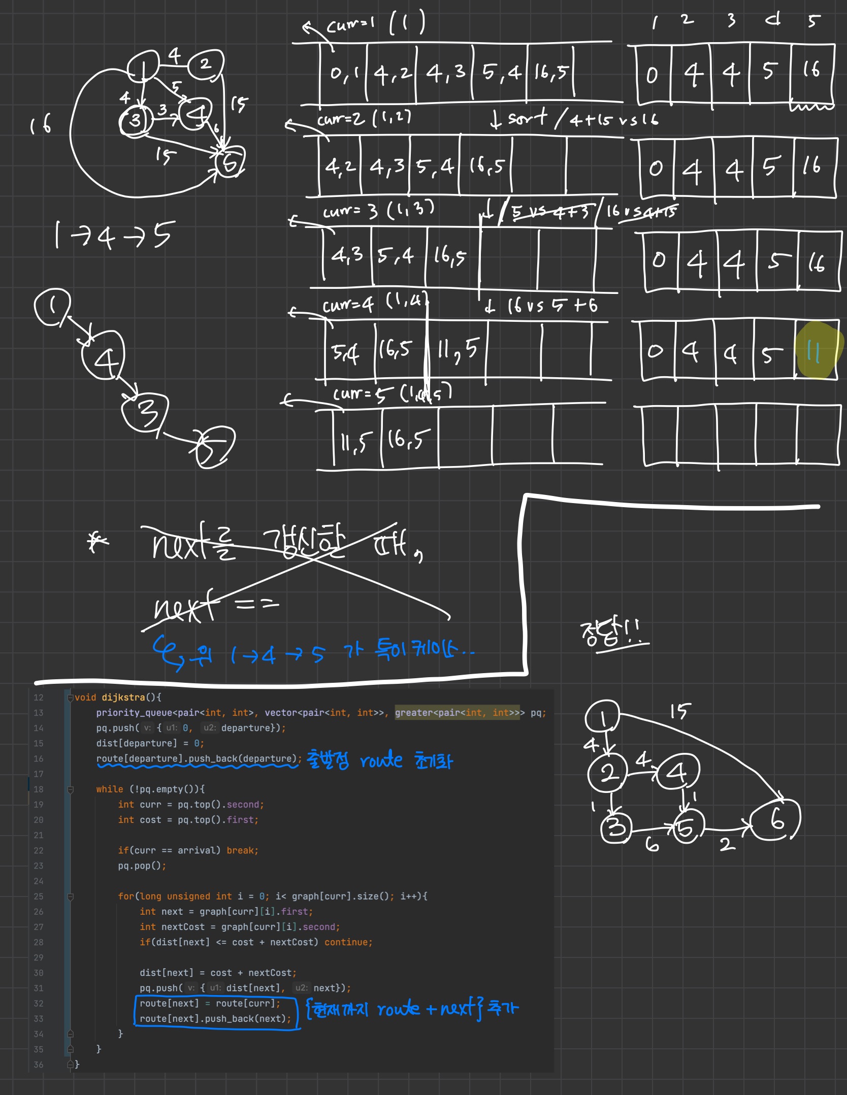 route[next] = route[curr]; //route 기록