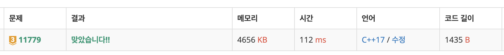 | [백준 / BOJ] acmicpc 1699 제곱수의 합 C++ (0) | 2022.05.01 |