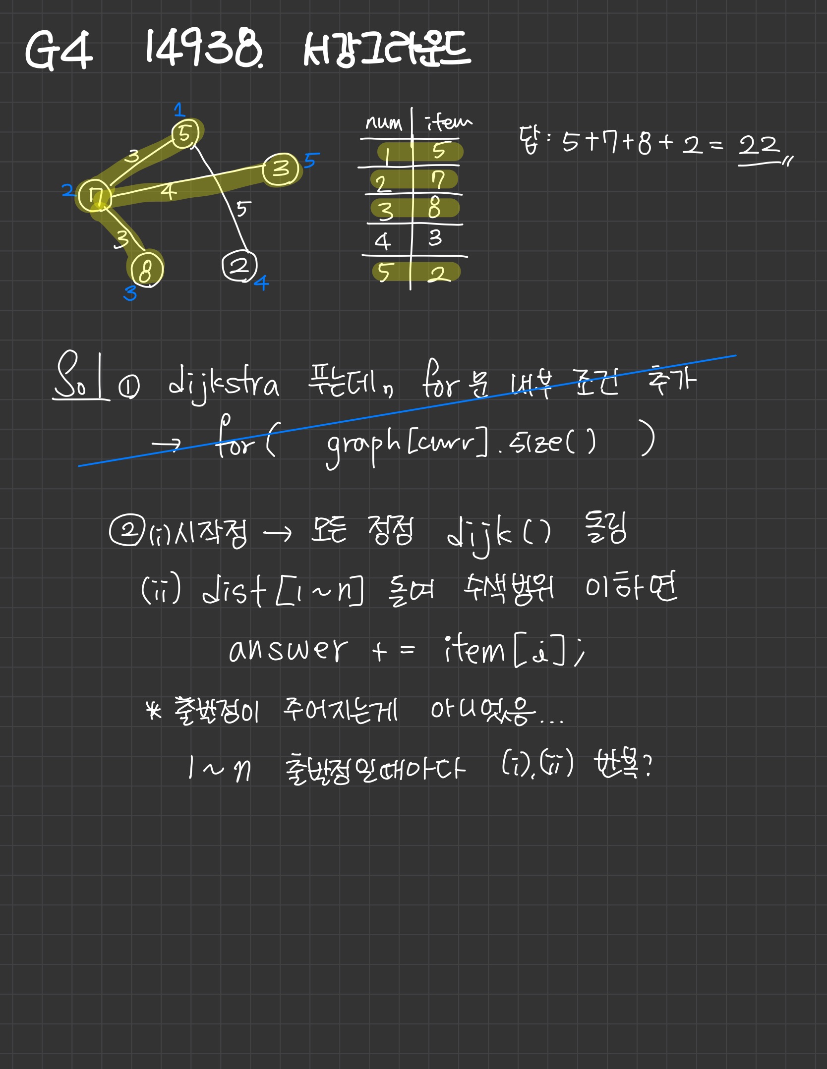 처음에 다익스트라 내부 for문 안에서 dist값을 갱신해 줄 때 예은이의 수색범위를 넘어가면 그냥 continue하는 식으로 짜려했었다.