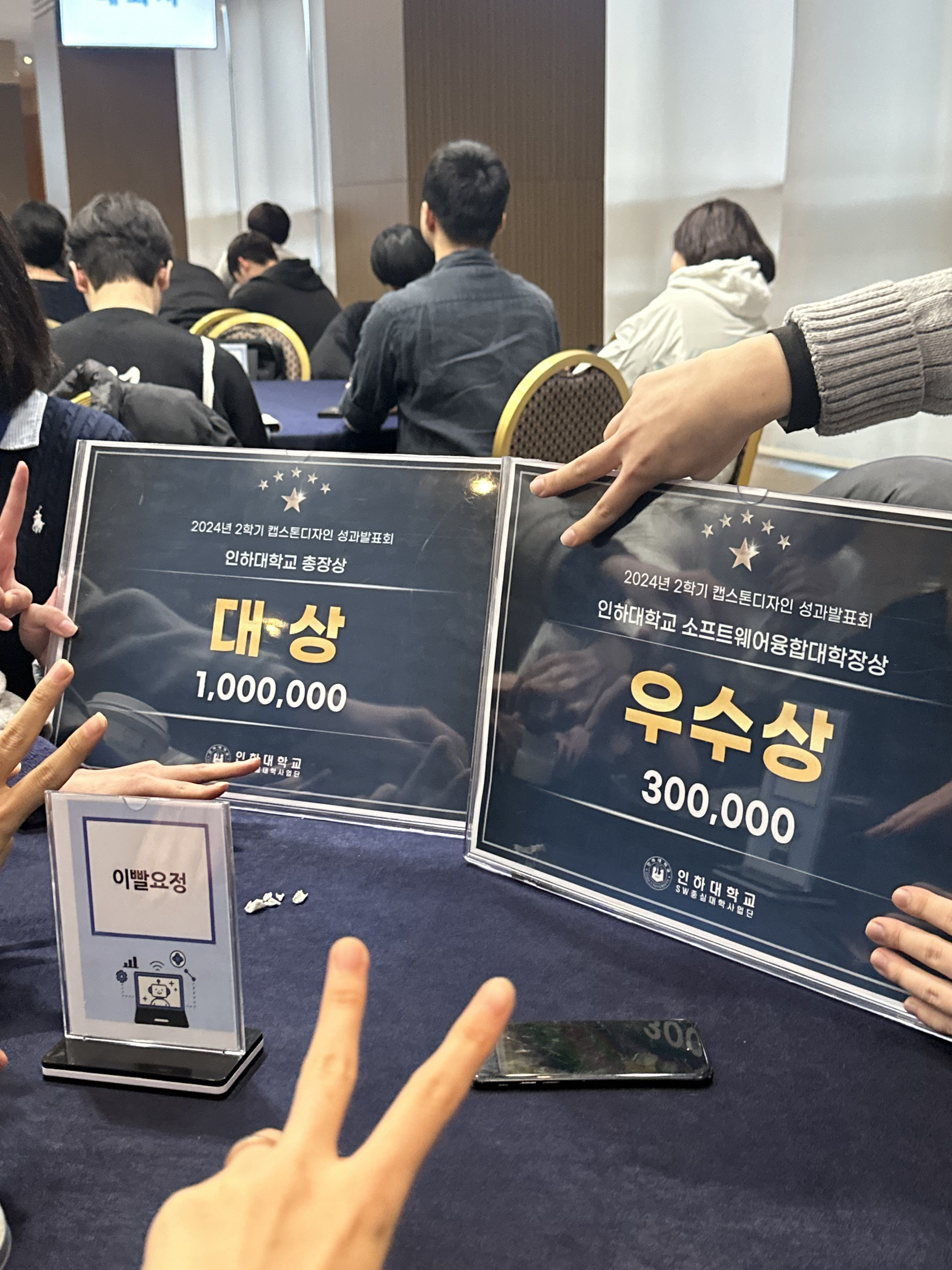 20학번 가장 친한 동생네 팀이랑 우연히 같은 테이블에 배정됐는데, 우리 두 팀이 나란히 대상, 우수상을 받았다 ㅎㅅㅎ